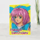 Une illustration originale d'anime d'une fille d'une chevelure mignonne et rose de manga. Ce design de carte d'anniversaire a été fait spécifiquement pour Zazzle, comportant des graphiques sur l'extérieur aussi bien que dans la carte et peut être entièrement customisé pour ajouter les photos et le texte supplémentaires au costume. Il serait idéal pour des admirateurs d'anime, des fous de manga et des filles visuelles et des types de gamer, ou n'importe qui intéressés à recevoir un cool, le kawaii, carte de voeux cartoony pour leur anniversaire. Cette conception exclusive n'est pas disponible dans d'autres magasins !