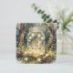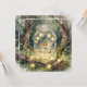 Une belle carte de vœux vierge sur le thème du conte de fées. La charmante illustration représente une jeune fée se balançant sur une balançoire magique à l'intérieur d'un pot Mason dans un jardin enchanté de la forêt. Des lumières de fée ornent les arbres et la balançoire.