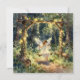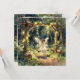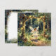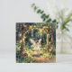 Une belle carte de vœux vierge sur le thème du conte de fées. La charmante illustration représente une jeune fée se balançant sur une balançoire magique dans un jardin enchanté de la forêt. Des lumières de fée ornent les arbres et la balançoire.
