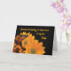 Après le décès de l'épouse de quelqu'un, l'anniversaire peut être un moment difficile. Faites-lui savoir que vous vous souciez de lui et vous vous en souvenez pendant cette période. Un papillon est vu sur des tournesols de couleur dorée brillante apportant joie, soins et espoir avec la carte.