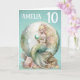 Mermaid Birthday Card - Une belle et longue sirène aux cheveux clairs, des fleurs rose pâle dans ses cheveux et sur son corps, sa queue est faite d'écailles vert et or, brillant dans la mer brillante. Elle est assise sur un rocher, tenant un grand orbe vert et blanc. Qu'y a-t-il à l'intérieur ? Peut être une perle, un peu d'or ou un autre trésor mystérieux. Vous pouvez ajouter le nom de votre précieuse sirène ainsi que son âge en faisant une carte unique et magique. À l'intérieur est un message personnalisable, la valeur par défaut dit, "vous souhaitant un anniversaire magique."