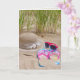 Flip-flops, lunettes de soleil et casquette d'été sur le sable de plage pour l'anniversaire de l'ami.