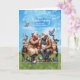 Un vieux couple sucré s'installe sur un banc du parc pour nourrir les pigeons avec une femme tenant un rose pour son mari sur cette adorable carte d'anniversaire de mariage pour un mari ou une femme.