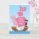 Un salut d'anniversaire avec une mignonne fille pirate sur un navire avec des voiles roses. graphisme ©Riefka Designs