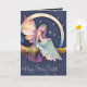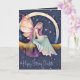 Carte d'anniversaire aquarelle avec une fée flottant dans le ciel nocturne avec des ailes de papillon. Cheveux violet clair et accents dorés. L'intérieur contient un joli message pour l'anniversaire d'une fille, mais cette carte peut être utilisée pour n'importe quelle célébration. Les deux côtés de la carte intérieure sont le ciel nocturne avec des nuages et un effet pailleté.