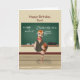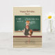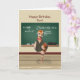 Un oiseau de grue de sandhill de bébé est habillé en tant que professeur de physique. Dans cette image humoristique sur une carte d'anniversaire pour un fils l'oiseau porte des verres, une cravate d'arc, et un gilet brun accompli une chaîne de montre d'or donnant l'aspect d'un professeur ou d'un étudiant très sérieux. Il se tient devant un panneau de craie vert rempli d'équations scientifiques. Tous les gisements des textes sont des modèles des textes et facilement changé ou supprimé.
