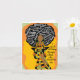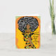 Cette carte de fête des mères présente une afro-américaine assise sur une chaise avec une robe multicolore et afro avec des mots inspirants.