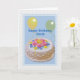 Ce gâteau décoré et les ballons jaunes et verts font une couverture festive pour cette joyeuse carte de voeux d'anniversaire. N'hésitez pas à changer le verset intérieur pour répondre à vos besoins.