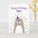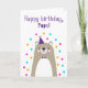 Carte Anniversaire pour Pops. Si vous appelez votre grand-père Pops au lieu de grand-père, cette carte d'anniversaire est parfaite pour lui. Vos paps adoreront le design de cette carte d'anniversaire mignon, moderne, coloré, de style scandinave qui comprend un ourson en peluche marron et gris avec un casquette de fête violet et un confetti rose, jaune et bleu avec le texte "Joyeux anniversaire, les gars!" Rendre cette carte personnalisable ! Cliquez sur "Edit Design", "Inside Bottom/Right : Text & Images", "Text" et "Add text" pour écrire votre propre message personnalisé à Pops in!