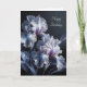 Des fleurs d'iris bleu et violet délicates avec des pétales complexes apparaissent contre un arrière - plan foncé aux lignes tendres