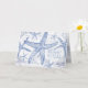 Envoyez des voeux d'anniversaire à cette personne spéciale de votre vie avec cette carte d'anniversaire d'inspiration nautique. Ce design présente des étoiles de mer en bleu et blanc sur une superposition de carte du monde. À l'intérieur de la carte a également une superposition de carte correspondante. Conçu par un artiste de renommée mondiale ©Tim Coffey.