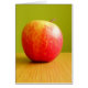 Carte avec photo de pomme rouge reposant sur une table en bois clair contre un arrière - plan vert citron.