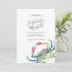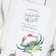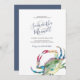 Cette invitation à la douche d'été met vos noms dans une typographie manuscrite stylisée avec détails d'événement dans une police serif gris charbon classique sur un arrière - plan blanc immaculé. Mon crabe d'aquarelle d'origine dans les tons rouges, bleus et verts orne l'avant. La carte d'invitation revient à une couleur bleu marine offerte. Un choix côtier chic mais élégant pour la plage décontractée de la Nouvelle-Angleterre, les couples nautiques ou estivaux ou les douches nuptiales. Pour voir toute ma suite de papeterie mariage visitez DoTellABelle sur Zazzle.