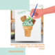Cette aquarelle peinte à la main par Daphsam présente une crème glacée au chocolat à la menthe ornée de feuilles frais à la menthe, des bonbons crunch au chocolat et une gaufre au coeur à la vanille. Parfait pour les amateurs de glaces, cette carte de charme vous apportera joie et douceur à la journée.