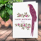 Ara Parrot Feuilles Tropicaux Dessin Carte Anniversaire. Ara motif avec feuilles tropicaux et fleurs dans les tons vert et bordeaux. Joyeux texte d'anniversaire et nom sur le devant - ajoutez votre nom. Ajoutez votre message ou effacez-le.