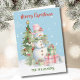 Cette dame a du style bien sûr — la carte Arbre de Noël de Snowman (Dame des neiges) d'aquarelle - enverra votre message pour la saison des fêtes avec joie et bon humour. Habillé pour la saison et entouré de cadeaux et de bonne humeur. Personnalisé avec votre nom devant; message à l'intérieur et un Joyeux Nouvel An à l'arrière. Si vous avez des questions de design, envoyez un conversation et nous serons ravis de le faire. Aquarelle Stylish Snowman Lady, jolie neige d'arbre de noël sifflant, message personnalisé nom de famille, bonne nouvelle année, amusement féminin girly, rétro charme