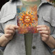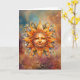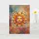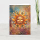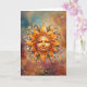 Carte de voeux pliée vierge avec art numérique généré par l'IA illustration d'une face de soleil cosmique sur un arrière - plan céleste abstrait.