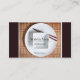 Une conception de carte de visite pour un restaurant asiatique de cuisine. Comporte les plats blancs simples avec les baguettes en bois sur un tapis d'endroit en bois. Bourgogne a coloré l'arrière - plan. Tout le texte est personnalisable, et la ligne centrée sur l'avant peut être enlevée si désirée.
