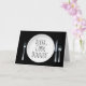 Assiette à dîner blanche avec couverts et commande Alexa sur fond noir pour anniversaire.