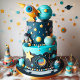 CARTE ASTRONAUT BLANC ET GÂTEAU ANNIVERSAIRE DE ENFANT S