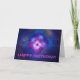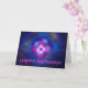 Une image fractale multicolore ressemblant à des rainures asymptotiques en verre ; avec des lumières de couleurs contrastées qui s'affichent. Le texte "Joyeux anniversaire !" apparaît également.