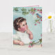 Un petit enfant contemple attentivement le chant de Bluebird sur une branche fleurie. Le design vintage est joli dans les tons doux aqua et roses.