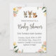 Un baby shower à thème boisé invitation avec animaux et fleurs.
