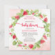 Berry baby shower de fraise douce invitation modèle, aquarelle fraise couronne, arrière - plan rose clair.