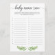 Carte Baby shower Feuille vert Nom de bébé Race Jeu