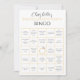 Bachelorette bingo est une activité parfaite pour la fête de bachelorette / fête de poules. Cette carte de jeu de bingo défi présente un design minimaliste noir et blanc avec anneau d'or. Modifiez le modèle pour rendre cette option unique. Cliquez sur - personnaliser - pour ajouter votre personnalisation.