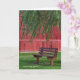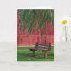 manquez le banc vous-vide sous un saule pleurant par la grange rouge de pays