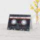 Vielle cassette noire avec chanson "Happy Birthday To You" sur arrière - plan blanc. Le texte du étiquette peut être modifié.