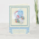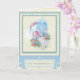Belle carte Baptismal pour bébé. Arrière - plan en dentelle beige avec bordure décorative bleue Verset Ecriture à l'intérieur mai être customisé pour répondre à vos besoins.