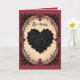 Trois roses noires dominant un ovale, regroupées serrées de sorte que leurs pétales extérieurs forment une silhouette en forme de cœur. Les roses sont représentées avec des lignes nettes et superposées et des contours minces. Derrière et entre les fleurs, des feuilles pointues rayonnent vers l'extérieur, ajoutant une touche de menace. Le cadre environnant est à la fois baroque et gothique : des volutes de couleur cramoisie foncée et noire s'entrelacent en motifs floraux symétriques aux quatre coins et aux centres supérieur et inférieur. L'ensemble de la pièce est méticuleusement équilibré, mélangeant romantisme et obscurité.