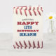 Carte d'anniversaire pour les fans ou les joueurs de baseball, cette carte a l'air d'un baseball et peut être personnalisée avec n'importe quel nom, âge ou adjectifs. A l'intérieur, une boule se trouve dans le coin qui se dirige vers les clôtures.