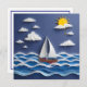 Carte postale mignonne pour rester en contact avec un voilier et le soleil illustré dans un effet de recouvrement de papier.