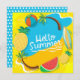 Plage estivale amusante avec planche de surf, ananas, soleil et pastèque. Videz sur le dos pour votre note personnelle.