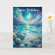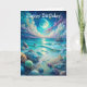 A beach at night with rocks and a moon. Suitable for a birthday card for anyone. Feel free to change text
