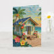A pretty impasto beach themed birthday card with a cute beach house, palm trees and tropical flowers. Inside is a sweet poem with a tropical theme.
