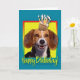 Célébrez un anniversaire avec cette carte de voeux de chien Beagle fantaisiste. Avec un cupcake équilibré sur sa tête, ce design ne manquera pas d'apporter un sourire et des rires ! BTW, Cette conception a plusieurs versions, avec différentes couleurs arrière - plans. Il y a aussi une invitation à une version Party.