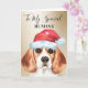 Une belle aquarelle peinte d'un chien Beagle portant un chapeau de Père Noël rouge et blanc revêtu de fausse fourrure est encadrée par un ciel doré enneigé et une formulation au-dessus de lui qui dit, à mes humains spéciaux (qui peuvent être changés en mère, père, soeur, etc). L'intérieur a l'accueil mignon, avoir un Noël et le Nouvel An fabuleux de façon pawsitive. Idéal pour tous les propriétaires de chiens et comme cartes uniques et spéciales de votre chien à vous.