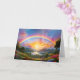 Un bel arc en ciel surplombe un lac au coucher du soleil, avec un pré fleur sauvage au premier plan, sur cette belle carte d'anniversaire.