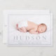 Customisez cette carte de faire-part de naissance bébé moderne et chic avec la photo et les détails de votre bébé doux. La carte comporte une photo bébé encadrée avec le nom du bébé en caractères gras et d'autres détails.