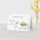 Carte de félicitations pour bébé douce et simple avec une petite famille d'oiseaux sur une branche fleurie.