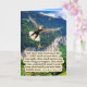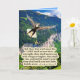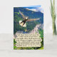 Belle Eagle Carte d'Ecriture d'une scène colorée et détaillée avec un glorieux Eagle Bald qui étend ses ailes et vole haut dans le ciel bleu au-dessus d'une vallée verdoyante au pied d'une montagne. Cette scène accompagne le verset de la Bible : "Mais ceux qui attendent sur l'Éternel renouvelleront leur force; ils monteront avec des ailes comme des aigles; ils courront, et ne seront pas fatigués; et ils marcheront et ne tomberont pas." Ésaïe 40:31. Cette Carte fait un merveilleux cadeau ou peut être utilisée pour nous rappeler la Parole de Dieu.