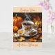 Carte de voeux thématique de Pretty Fall disant, "Envoi de bénédictions d'automne" pour un ami ou un membre de la famille. Illustration d'une scène d'automne avec une tasse de café chaud, des tranches d'orange, des citrouilles et des feuilles d'automne.