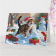 Illustration de vacances pleine de charme avec un chat gai jouant dans la neige, portant un chapeau de Père Noël et entouré de boîtes cadeaux colorées. Dans l'arrière - plan, les enfants construisent un bonhomme de neige à côté d'un sapin de Noël enneigé, créant un merveilleux pays hivernal. Parfait pour répandre la joie des fêtes et capturer la magie de Noël.