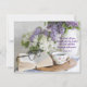 Un vase de lilas, des lunettes, un livre et une tasse de thé, une image apaisante avec des mots de la Bible "Le Seigneur donnera de la force à son peuple; le Seigneur bénira son peuple avec paix" L'image légèrement identique au verso de la carte est facilement retiré si vous préférez.