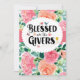 Merci à quelqu'un avec ce design élégant avec le message, "Heureux les Givers." Le design apparaît avec des accents colorés de fleurs, papillons et oiseaux. A l'intérieur peut être customisé avec votre propre message, mais a ce test d'espace réservé : "Ceux qui donnent toujours, toujours aider, toujours rendre la vie belle pour tous ils connaissent. Ça a toujours été VOUS. MERCI !"