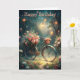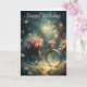 A bicycle with a flower basket on the front and more flowers at the back. Suitable for a birthday card, anniversary card etc for anyone. Feel free to change text
